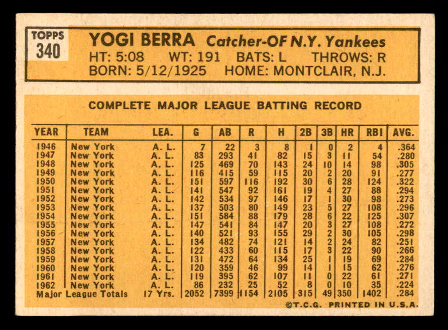 1963 Topps Baseball #340 Yogi Berra Yankees EX+/EX-MT 540674