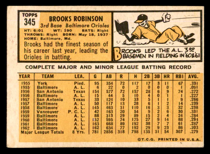 1963 Topps Baseball #345 Brooks Robinson Orioles EX 540603