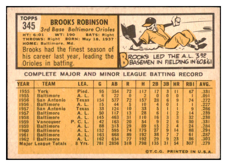 1963 Topps Baseball #345 Brooks Robinson Orioles EX+/EX-MT 528917