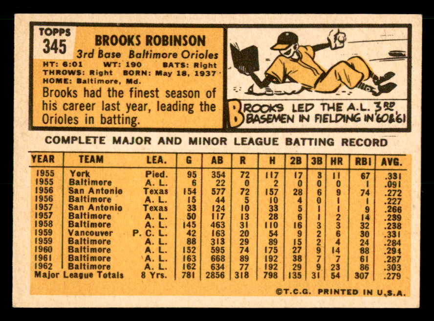 1963 Topps Baseball #345 Brooks Robinson Orioles EX-MT 539697