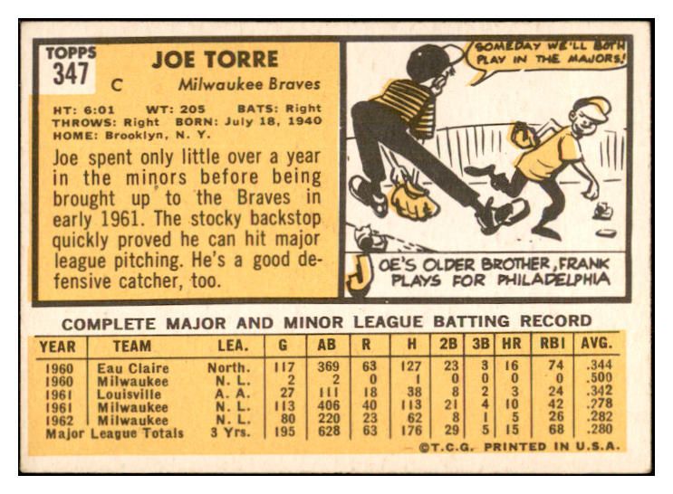 1963 Topps Baseball #347 Joe Torre Braves EX 534274