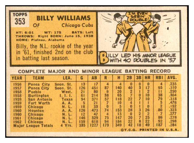 1963 Topps Baseball #353 Billy Williams Cubs EX 534282