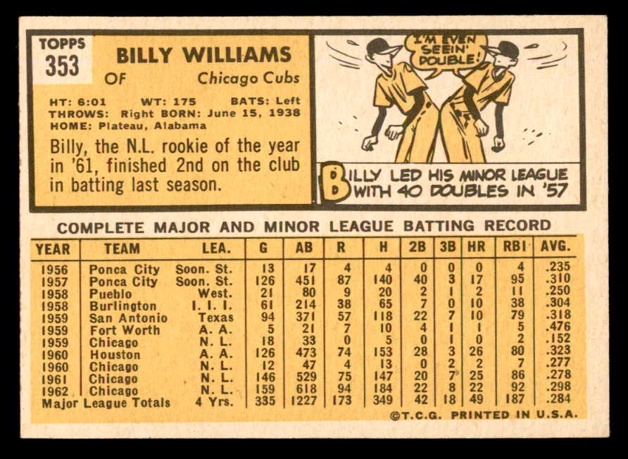 1963 Topps Baseball #353 Billy Williams Cubs EX 540588