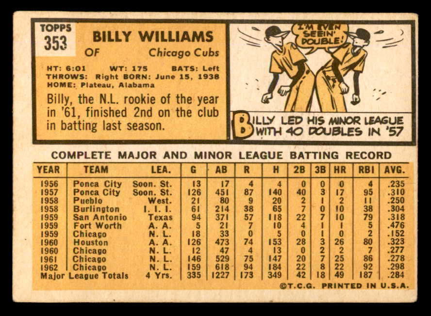 1963 Topps Baseball #353 Billy Williams Cubs GD-VG 540587
