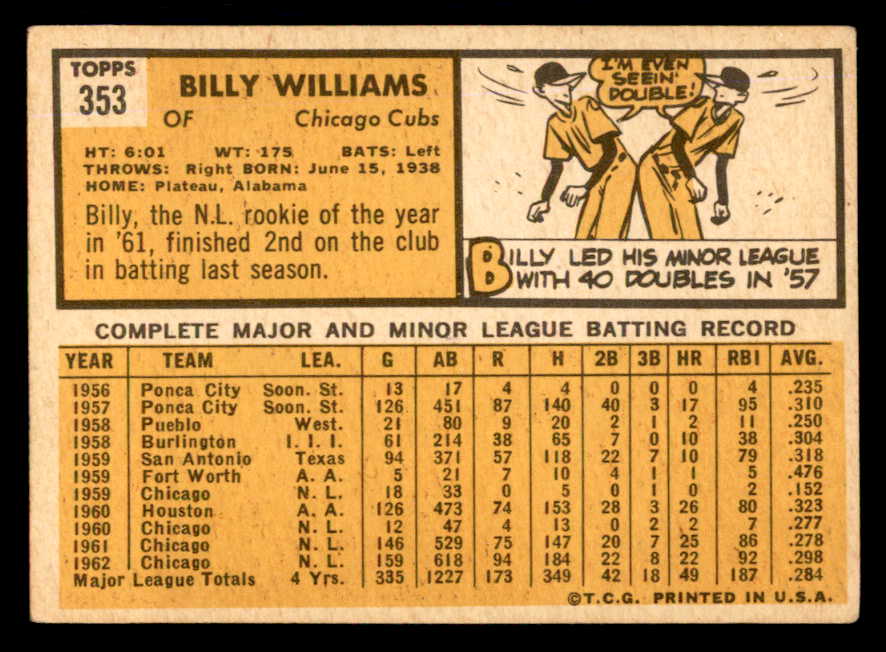 1963 Topps Baseball #353 Billy Williams Cubs VG-EX 540593