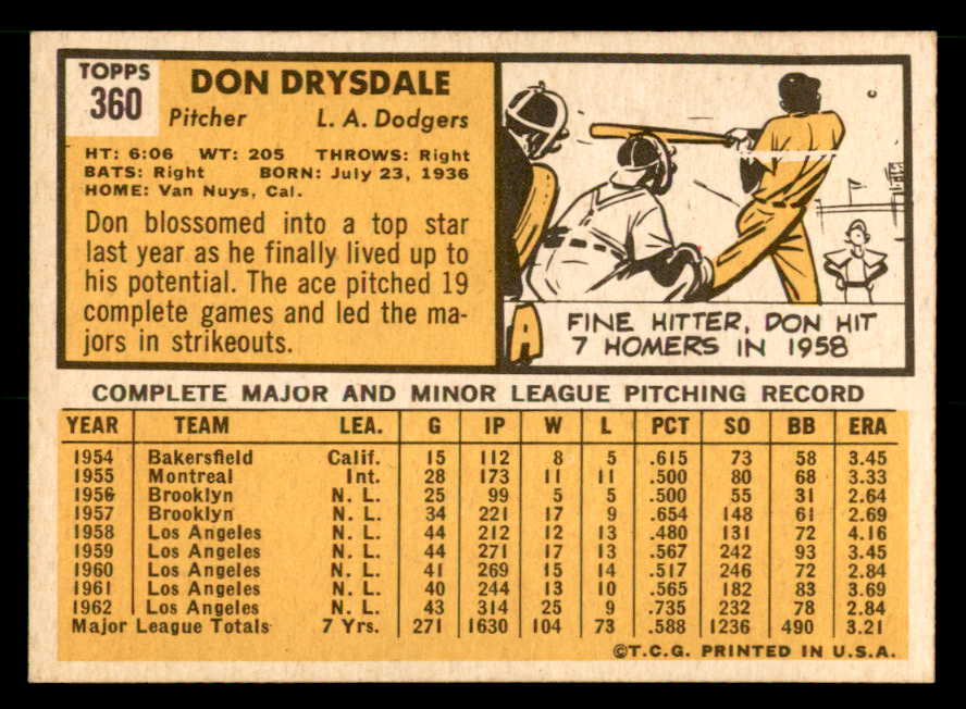 1963 Topps Baseball #360 Don Drysdale Dodgers EX-MT 539686