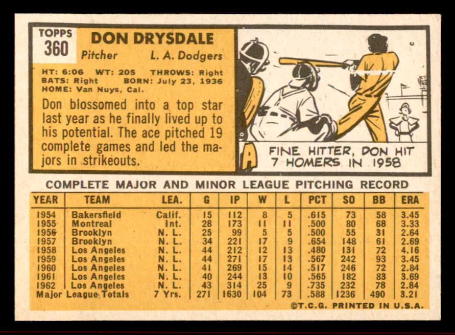 1963 Topps Baseball #360 Don Drysdale Dodgers NR-MT 542059