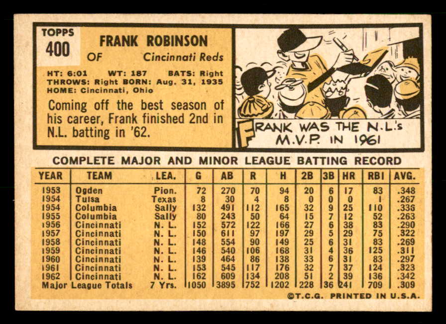 1963 Topps Baseball #400 Frank Robinson Reds NR-MT 539694