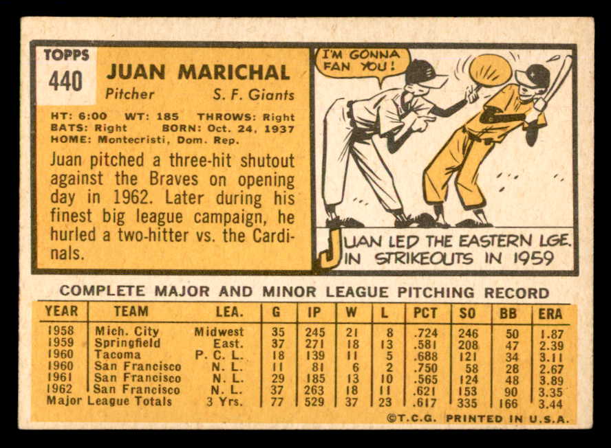 1963 Topps Baseball #440 Juan Marichal Giants EX+/EX-MT 540640