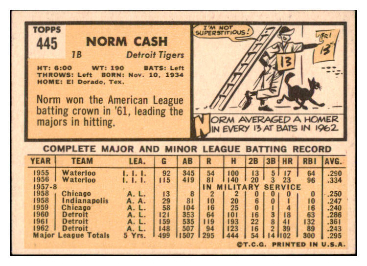 1963 Topps Baseball #445 Norm Cash Tigers EX-MT 524546