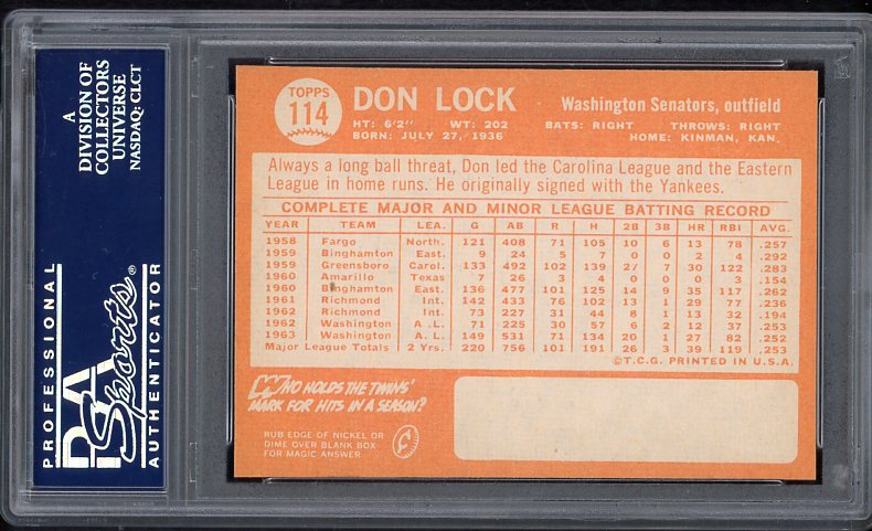 1964 Topps Baseball #114 Don Lock Senators PSA 8 NM/MT 538378