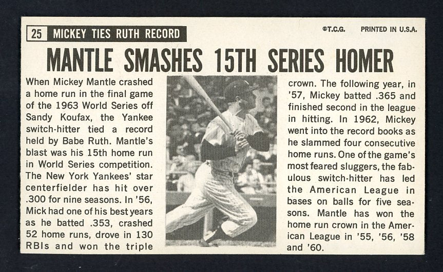 1964 Topps Baseball Giants #025 Mickey Mantle Yankees EX 532328