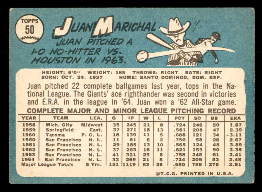 1965 Topps Baseball #050 Juan Marichal Giants EX 540847