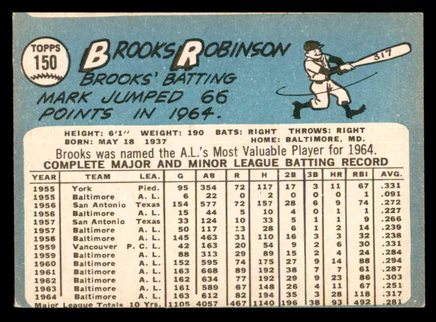 1965 Topps Baseball #150 Brooks Robinson Orioles EX 540803