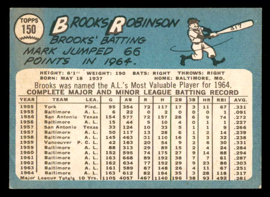 1965 Topps Baseball #150 Brooks Robinson Orioles VG 540800