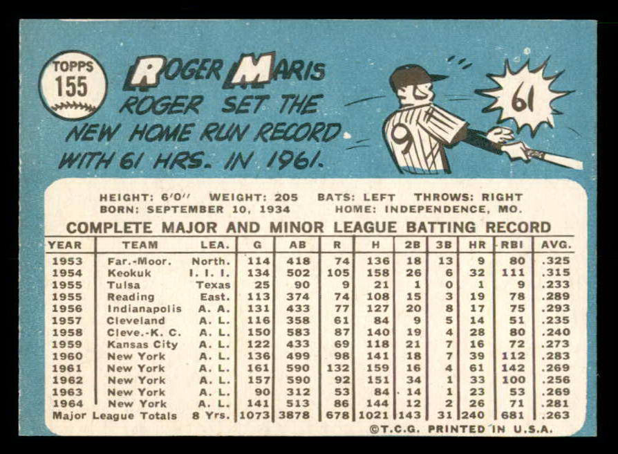 1965 Topps Baseball #155 Roger Maris Yankees EX-MT 539750