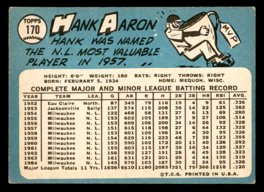1965 Topps Baseball #170 Hank Aaron Braves VG-EX 540839