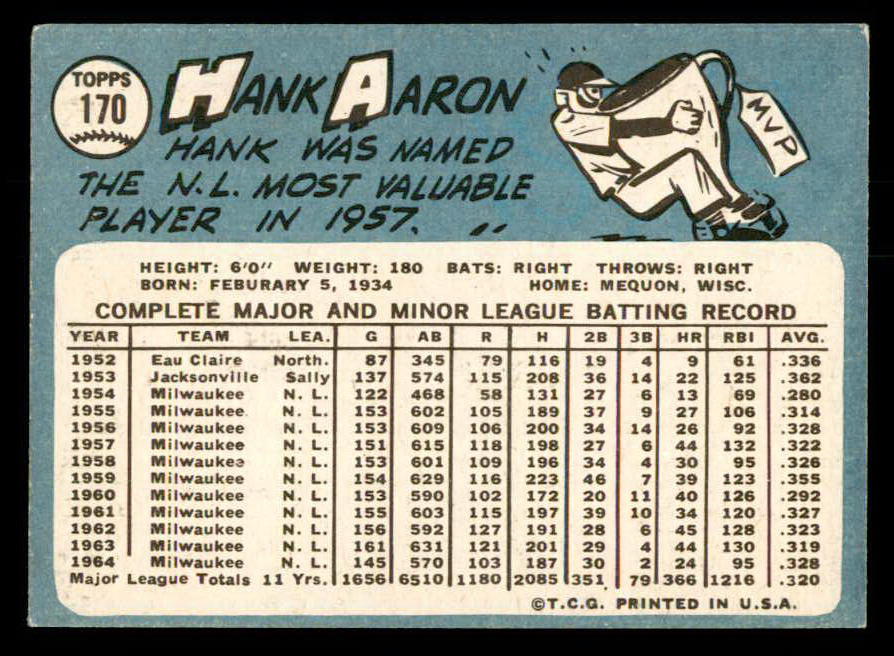 1965 Topps Baseball #170 Hank Aaron Braves VG-EX 540840