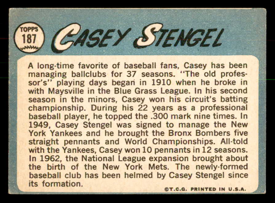 1965 Topps Baseball #187 Casey Stengel Mets VG-EX 541315