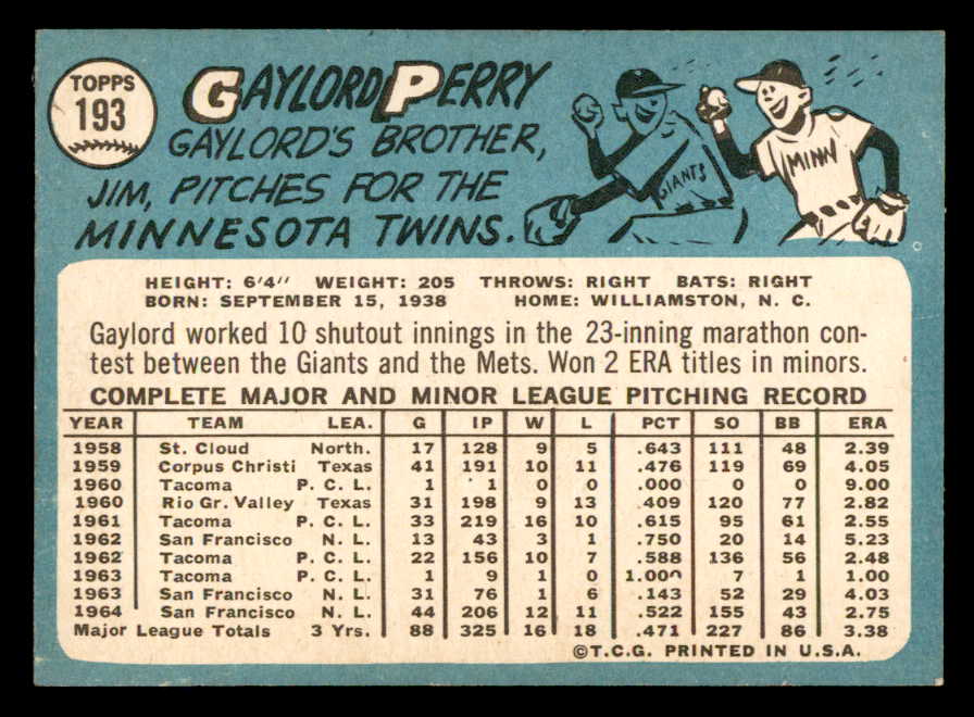 1965 Topps Baseball #193 Gaylord Perry Giants EX-MT 544617