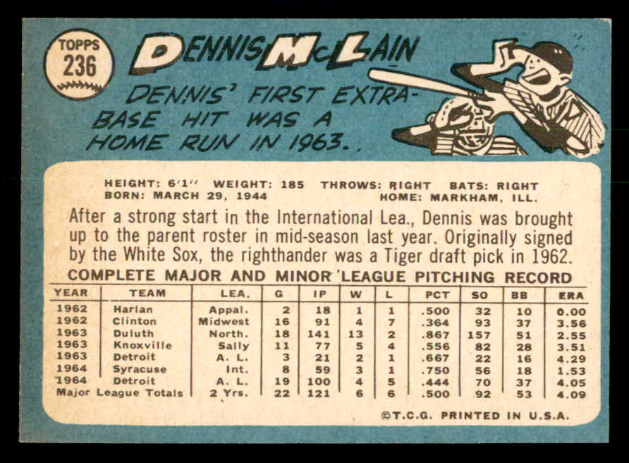 1965 Topps Baseball #236 Denny McLain Tigers EX-MT 540791