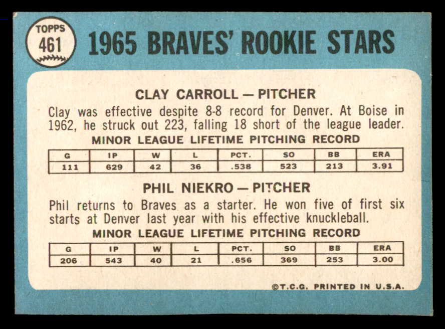 1965 Topps Baseball #461 Phil Niekro Braves EX-MT 544614