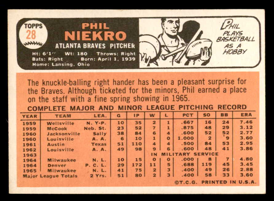 1966 Topps Baseball #028 Phil Niekro Braves VG-EX 546204