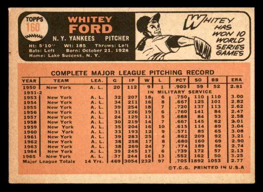1966 Topps Baseball #160 Whitey Ford Yankees VG-EX 544558