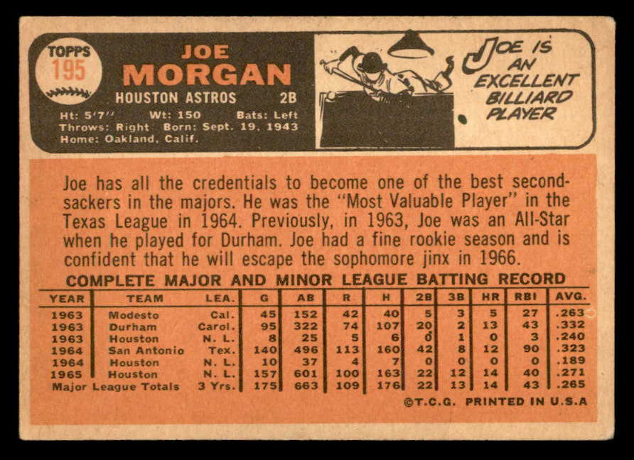 1966 Topps Baseball #195 Joe Morgan Astros VG 544554