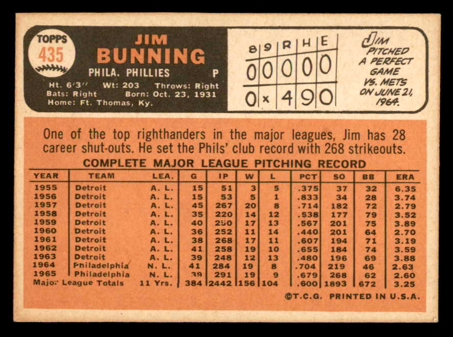 1966 Topps Baseball #435 Jim Bunning Phillies EX-MT 544548