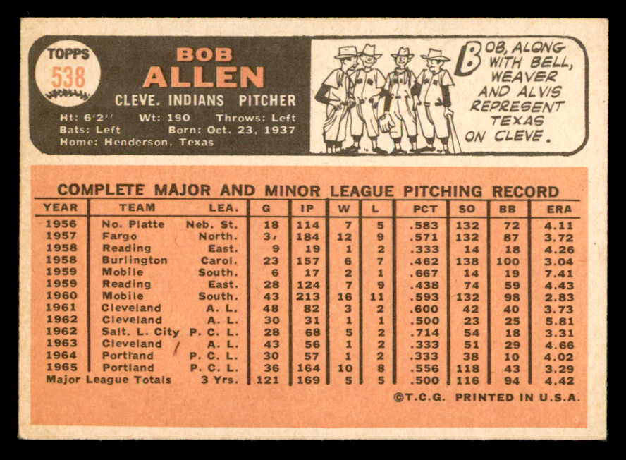 1966 Topps Baseball #538 Bob Allen Indians EX-MT 544451