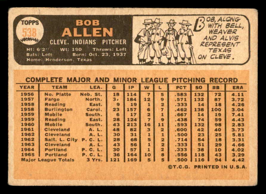 1966 Topps Baseball #538 Bob Allen Indians VG 544452