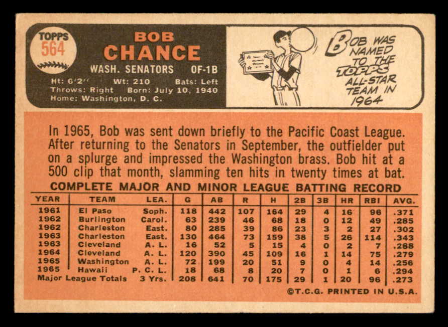 1966 Topps Baseball #564 Bob Chance Senators EX 544496