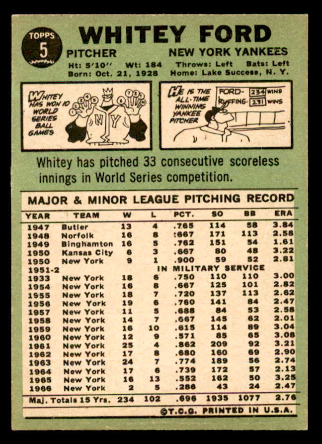 1967 Topps Baseball #005 Whitey Ford Yankees NR-MT 538936