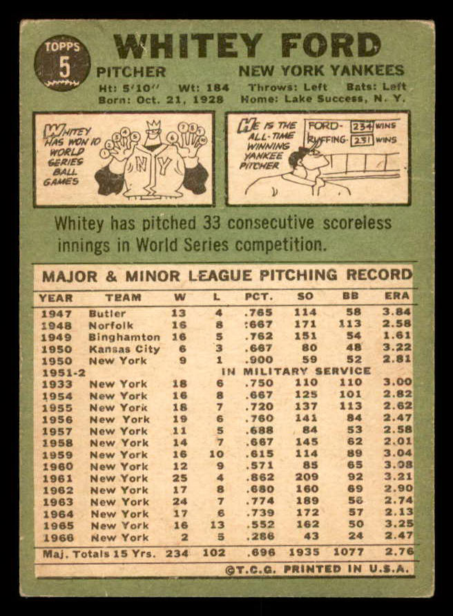 1967 Topps Baseball #005 Whitey Ford Yankees VG-EX 539816