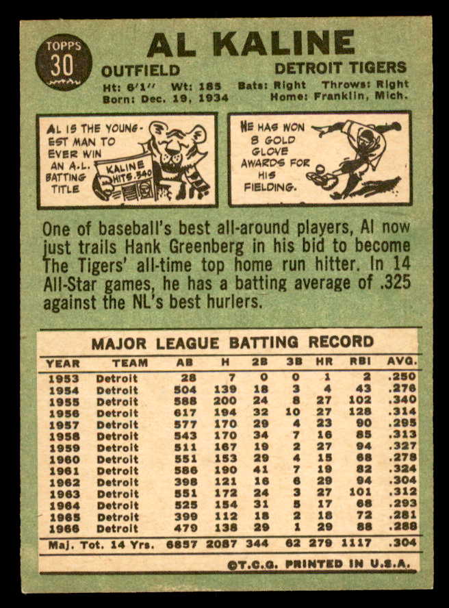 1967 Topps Baseball #030 Al Kaline Tigers EX-MT 541007