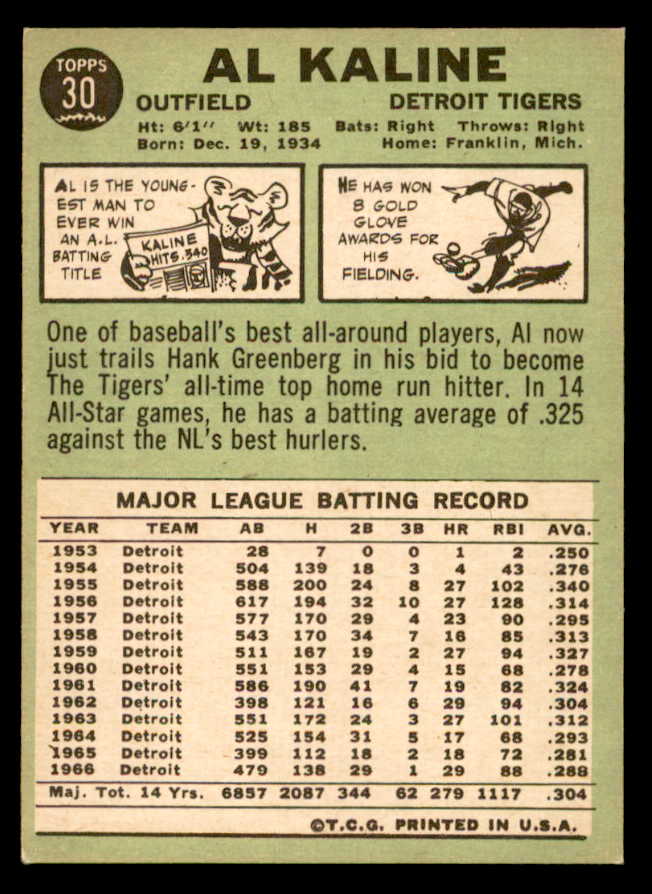 1967 Topps Baseball #030 Al Kaline Tigers NR-MT 538900