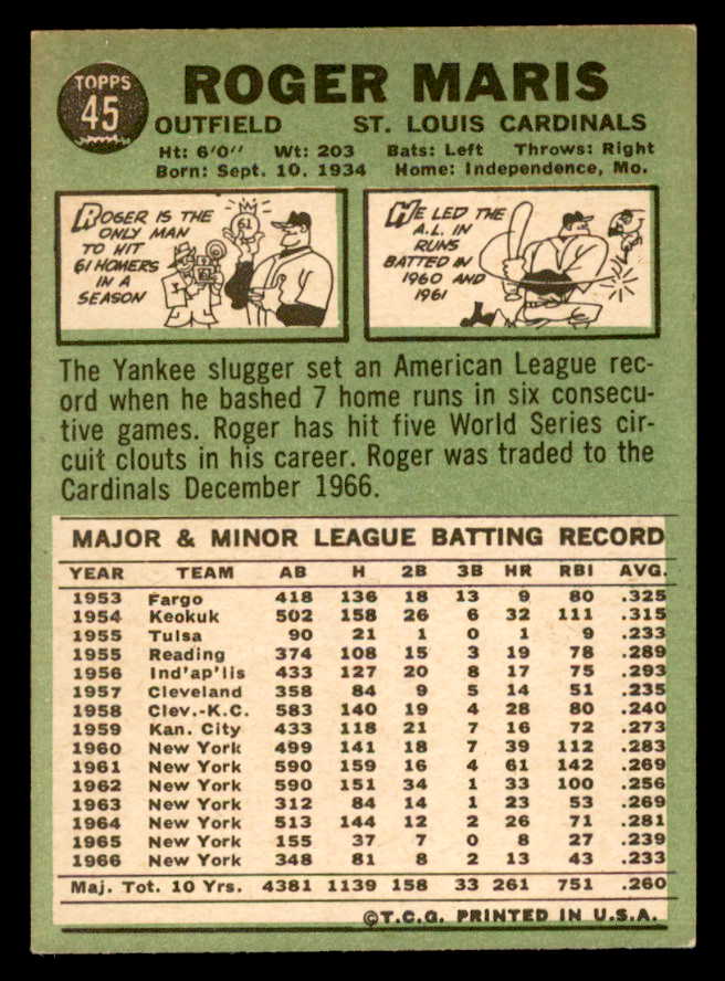 1967 Topps Baseball #045 Roger Maris Cardinals EX-MT 539229