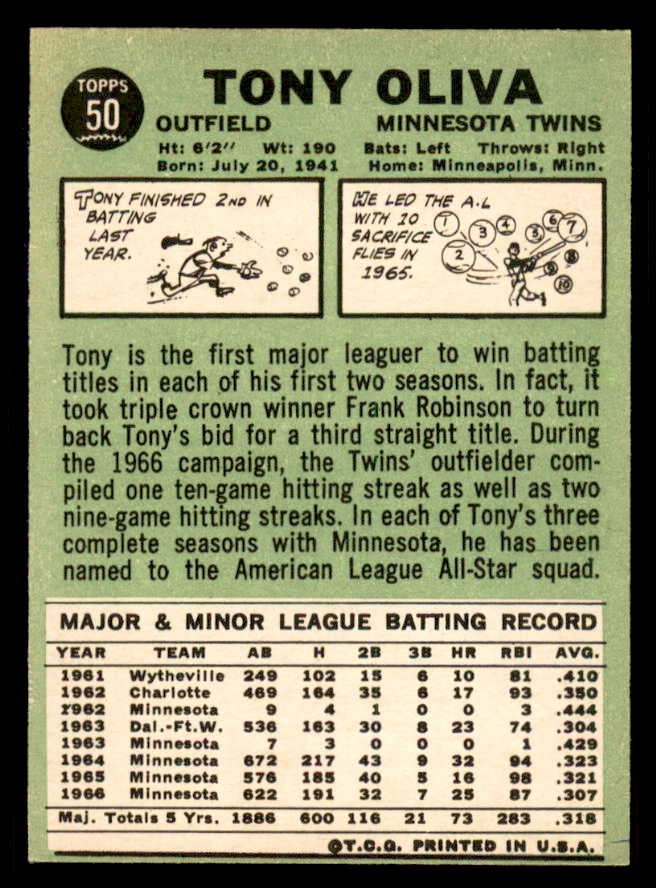 1967 Topps Baseball #050 Tony Oliva Twins EX-MT 543272