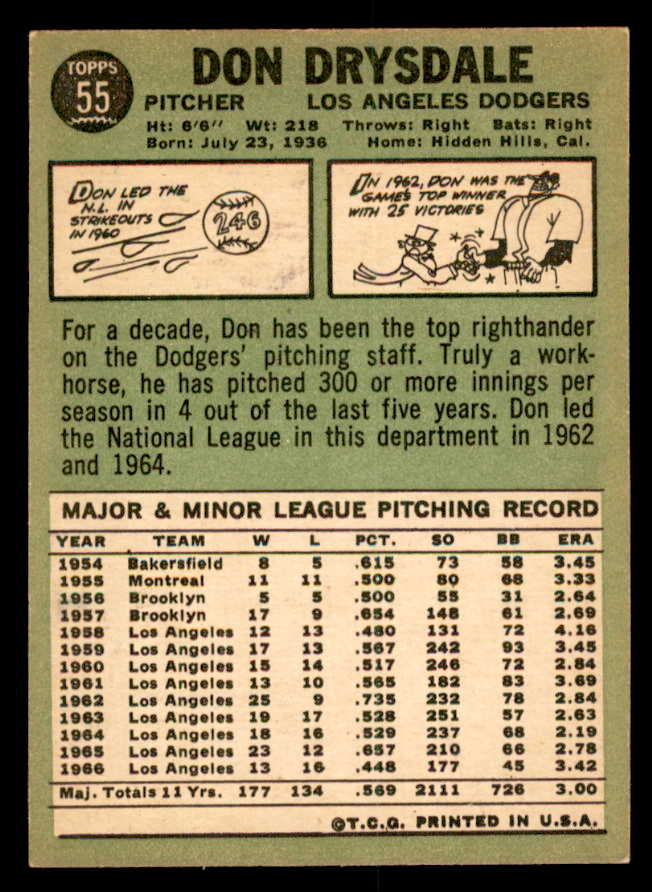 1967 Topps Baseball #055 Don Drysdale Dodgers VG-EX 539818