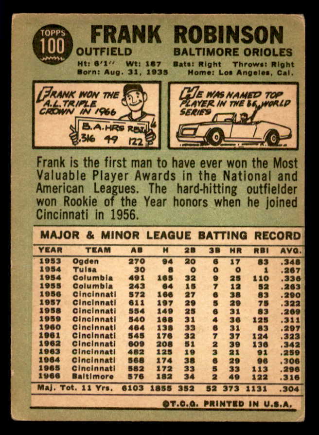 1967 Topps Baseball #100 Frank Robinson Orioles VG 540987