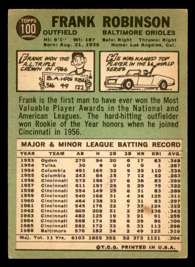 1967 Topps Baseball #100 Frank Robinson Orioles VG-EX 539808