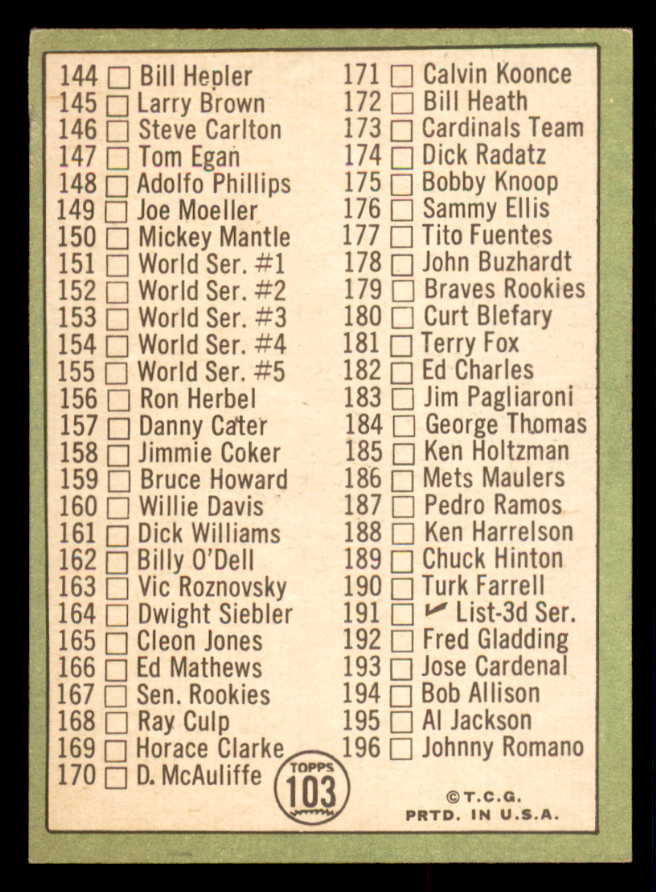 1967 Topps Baseball #103 Checklist 2 Mickey Mantle EX-MT 543230