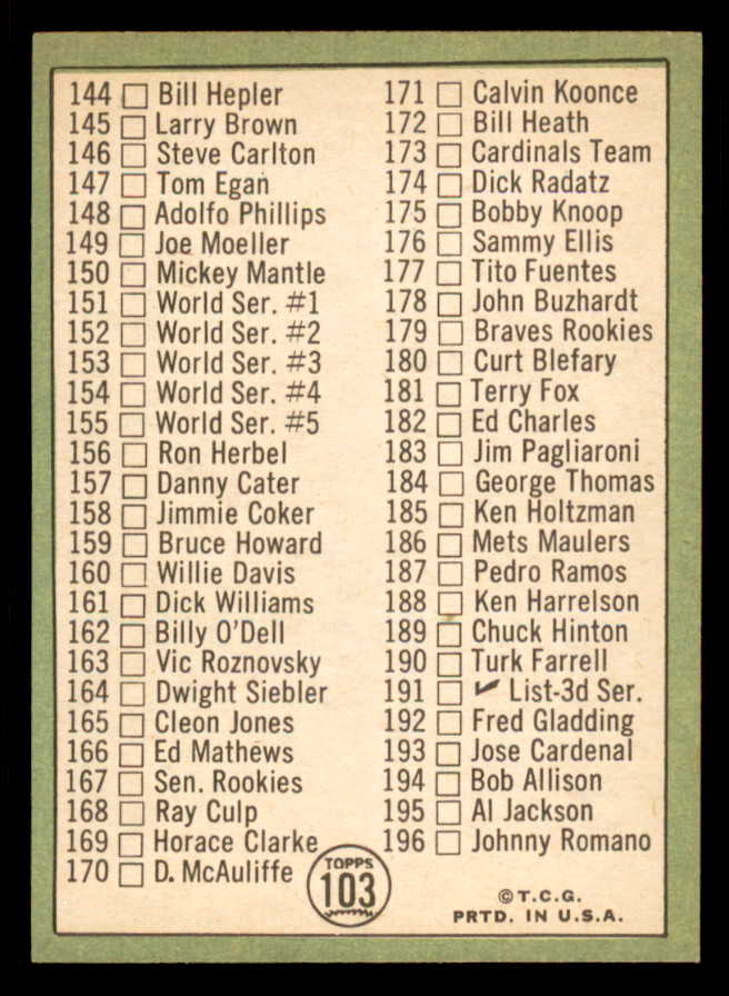 1967 Topps Baseball #103 Checklist 2 Mickey Mantle EX-MT 543276