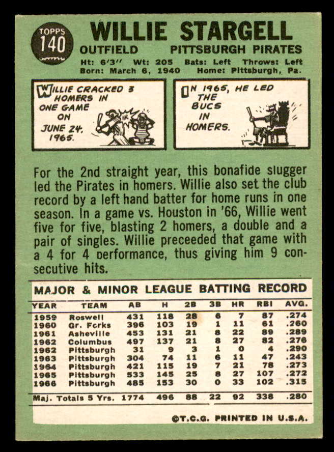 1967 Topps Baseball #140 Willie Stargell Pirates EX-MT 540993