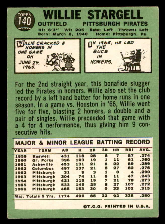 1967 Topps Baseball #140 Willie Stargell Pirates VG-EX 539805