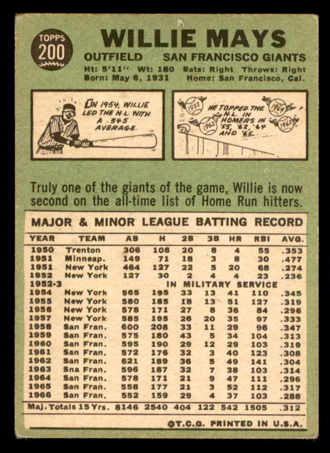 1967 Topps Baseball #200 Willie Mays Giants Good 540949