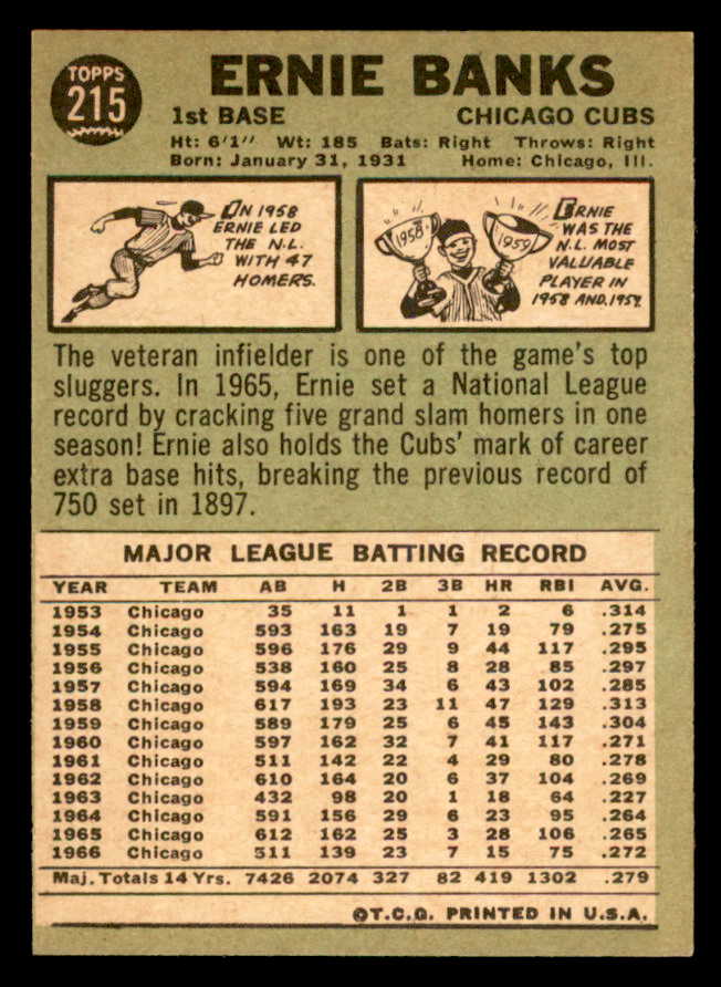 1967 Topps Baseball #215 Ernie Banks Cubs EX-MT 539211