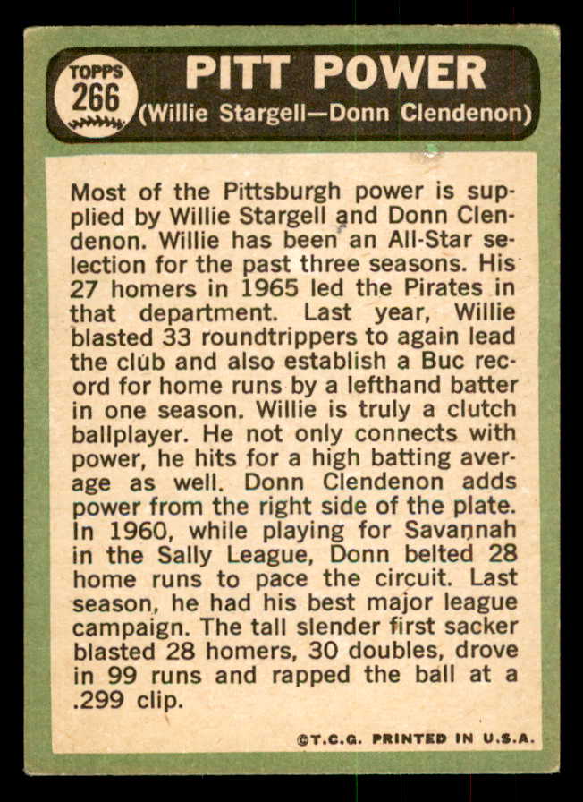 1967 Topps Baseball #266 Willie Stargell Donn Clendenon VG 541333