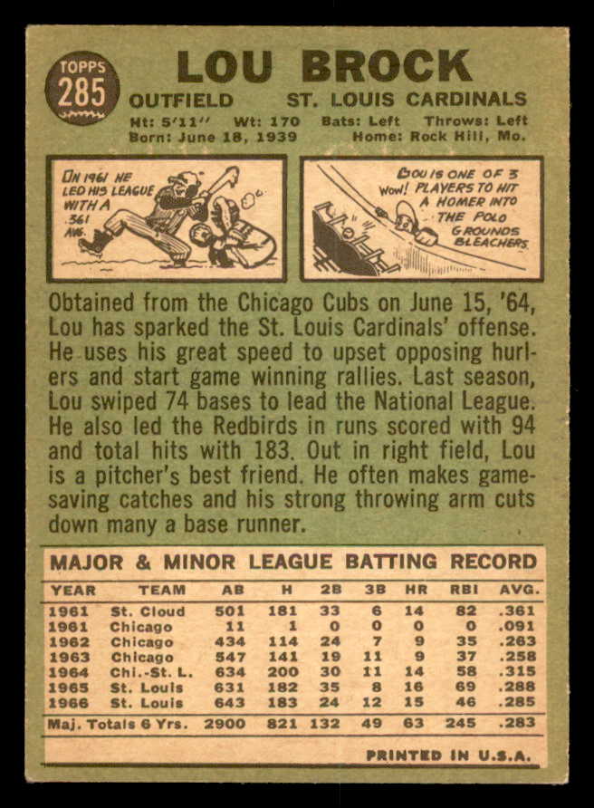 1967 Topps Baseball #285 Lou Brock Cardinals VG-EX 539826